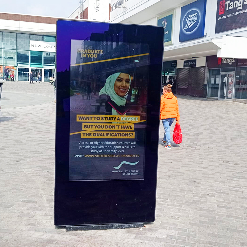 Our recent digital high street advertising campaign for South Essex College. They all featured on numerous locations around Southend High Street. If you want local targeted advertising campaigns to broader national campaigns, reach your target audience with the right messaging at the right time on our high streets. Contact us to find out more. Telephone: 01268 711205 Email: [email protected]